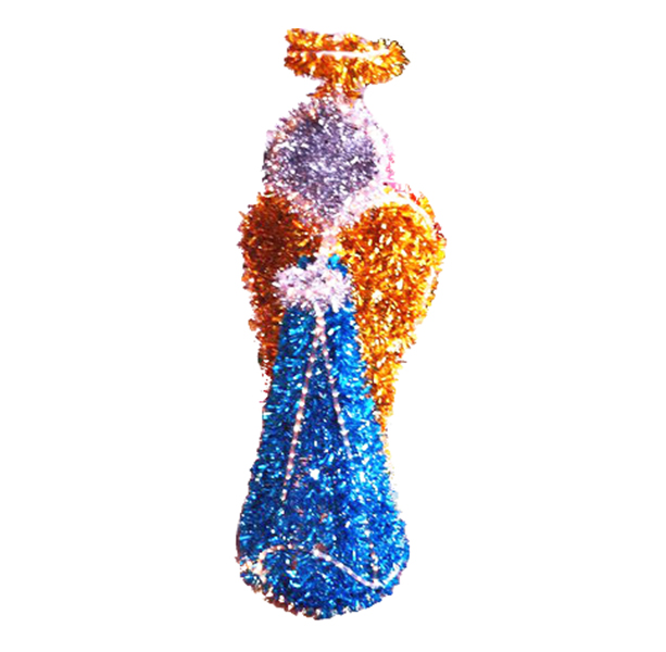 ÁNGEL FORRADO DE ESCARCHA PREMIUM GALVANIZADA DE DIFERENTE COLOR CON MANGUERA DE LUZ.