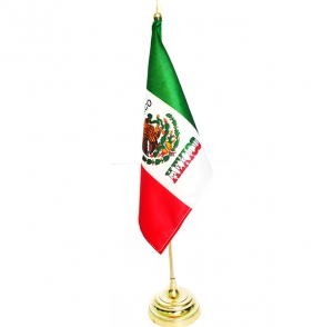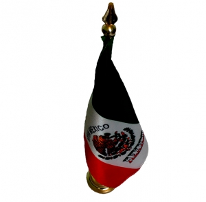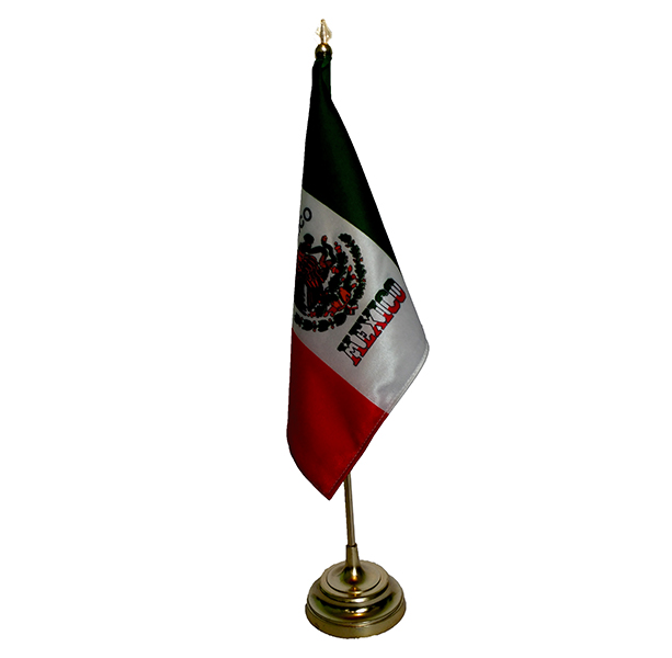 BANDERA DE ESCRITORIO, IMPRESA POR AMBOS LADOS CON ASTA DE PLÁSTICO METALIZADO COLOR ORO