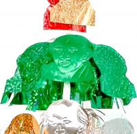 CARRUSEL TRICOLOR CON FIGURAS HÉROES DE LA INDEPENDENCIA, CAMPANA Y ÁGUILA METALIZADAS BRILLANTES.
