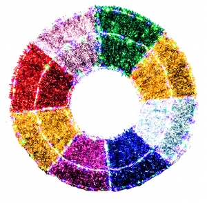 CORONA ESCARCHA COLORES FORRADA CON ESCARCHA PREMIUM Y LUZ LED 1METRO DIÁMETRO