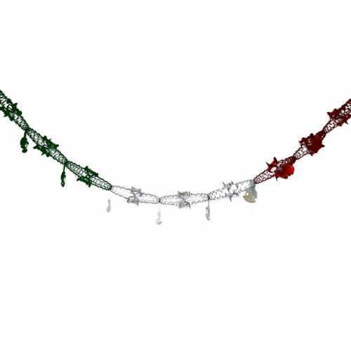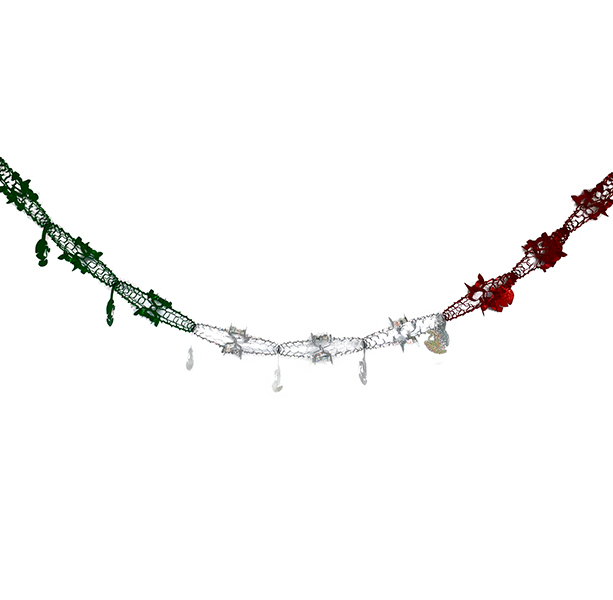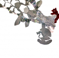 GUIRNALDA METALIZADA TRICOLOR CON FIGURAS DE HÉROES COLGANDO EN COLOR ORO.