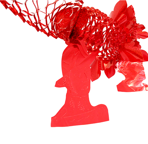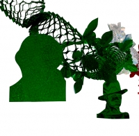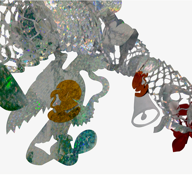 GUIRNALDA METALIZADA TRICOLOR CON FIGURAS DE HÉROES COLGANDO EN COLOR ORO.