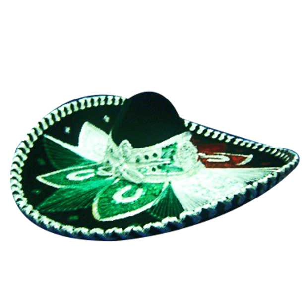 SOMBRERO DE CHARRO TRICOLOR, FORRADO EN TERCIOPELO FINO, BORDADO CON HILO Y LENTEJUELA. MEDIDAS: 58 CM (GRANDE)COLORES:TRICOLOR, NEGRO CON BLANCO