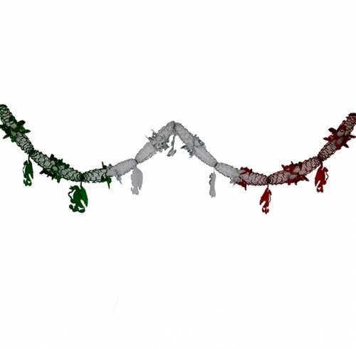 guirnalda panal metalizada tricolor figuras héroes independencia 3 metros adornos México fiestas patrias