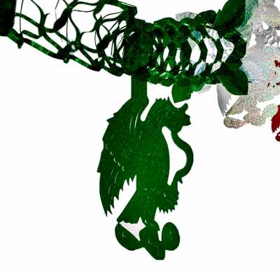 guirnalda panal metalizada tricolor figuras héroes independencia 3 metros adornos México fiestas patrias